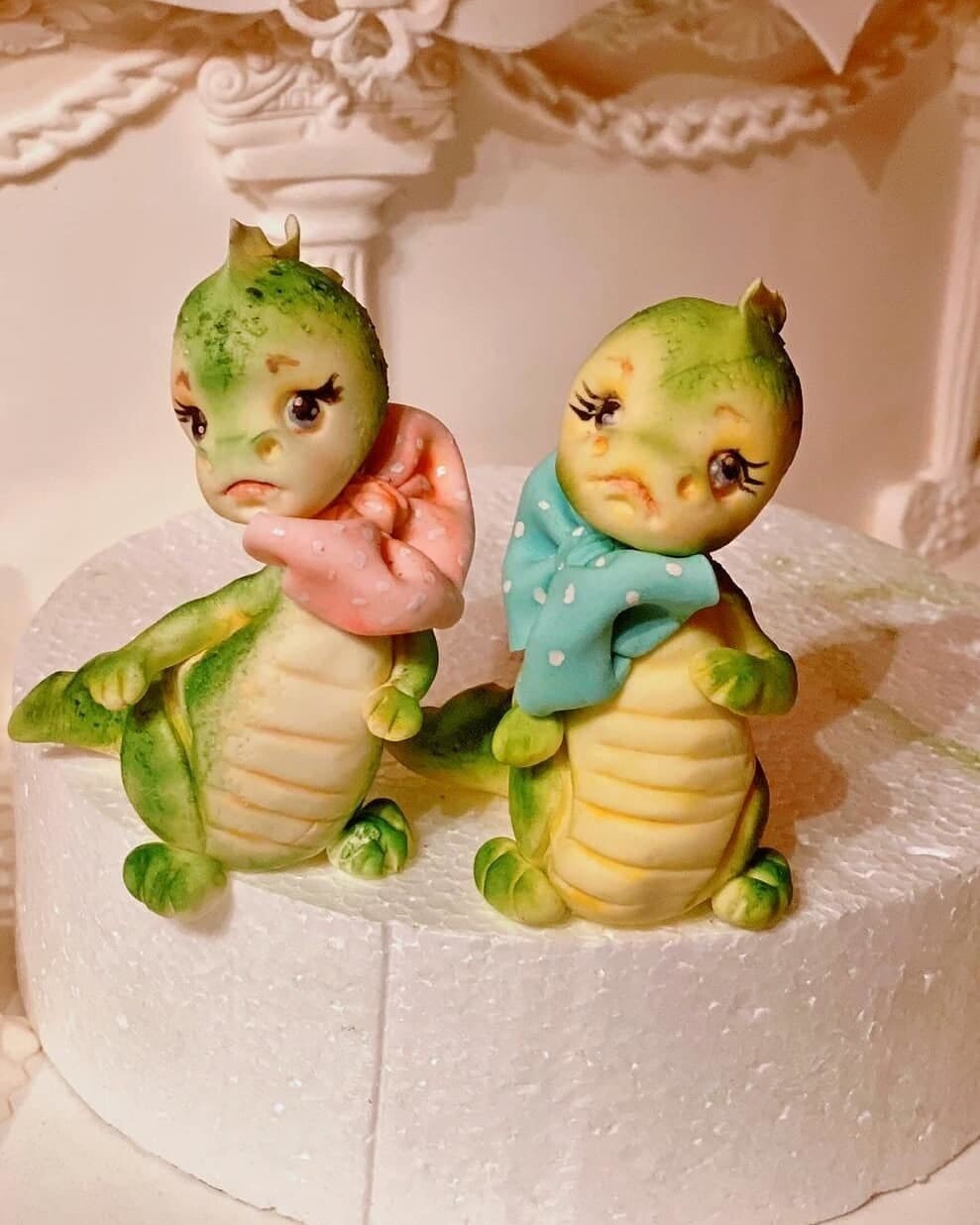 Девочки, кто еще ни разу не пробовал работать с мастикой, вперед, это не страшно и увлекательно. Сама впервые взяла мастику в руки, так как первый опыт был не удачен, и то там обтяжка, у меня даже платилин надо мной смеялся, обычные шарики как элипсы. А тут и дракоши и ящерки , и такой процесс захватывающий. Ууухх. Вместе мы всё сможем!